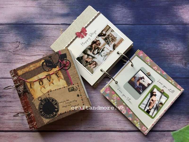 Craft & More Vietnam với hơn 10 năm kinh nghiệm, mê làm scrapbook nói riêng và handmade nói chung, chúng mình hiểu những mong muốn thực tế và hợp lý từ khách hàng, đặc biệt là những người bận rộn, chưa nhiều kinh nghiệm làm handmade nên đã thiết kế sẵn nhiều mẫu scrapbook tuyệt đẹp, đậm chất vintage rất được yêu thích. Việc còn lại của bạn là in ảnh, dán và viết ghi chú kể lại câu chuyện bạn muốn.