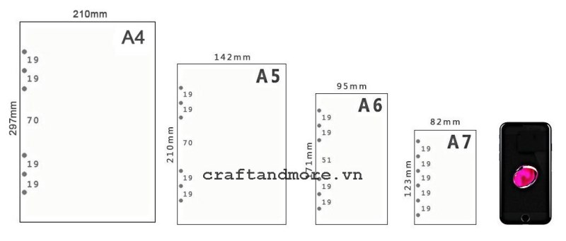 Craft & More Vietnam có thể tùy biến nhiều kích thước từ sổ tay nhỏ mini cute dễ thương đến các kích thước chuẩn A4, A5, A6, B5. Các loại sổ làm catalog, menu, sổ trưng bày thì các yêu cầu gần như cá nhân hóa hoàn toàn. Hãy trao đổi thật cụ thể, hoặc gởi các mẫu, kiểu qua hình ảnh để được tư vấn cụ thể.