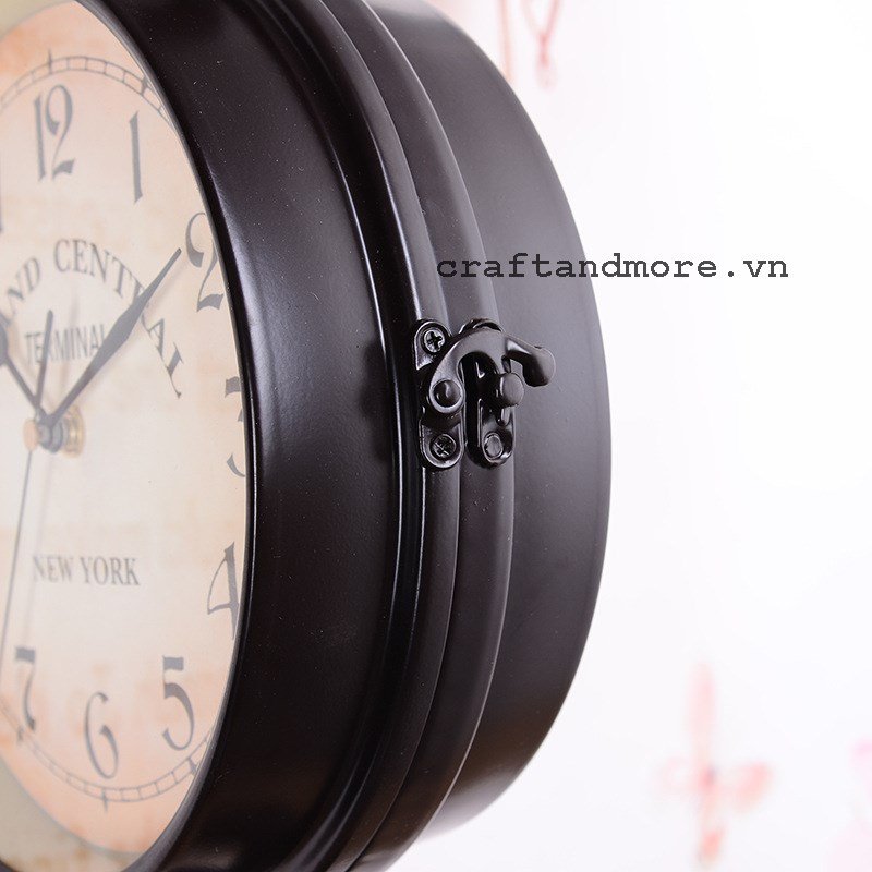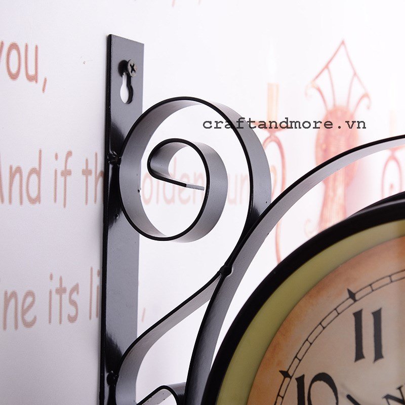 Được thiết kế theo phong cách Vintage, tô đậm vẻ sang trọng cho ngôi nhà của bạn. Sẽ phát huy được giá trị sử dụng khi treo ở hành lang hay cột nhà những nơi góc nhìn bị hạn chế. Đồng hồ treo tường 2 mặt phong cách cổ điển Thích hợp trang trí quán cà phê, phòng ngủ, hành lang. Đồng hồ 2 mặt, dùng pin, kim trôi. Chất liệu thép sơn tĩnh điện không rỉ, bền đẹp với thời gian.