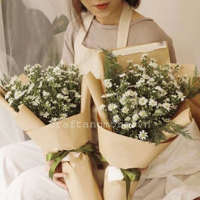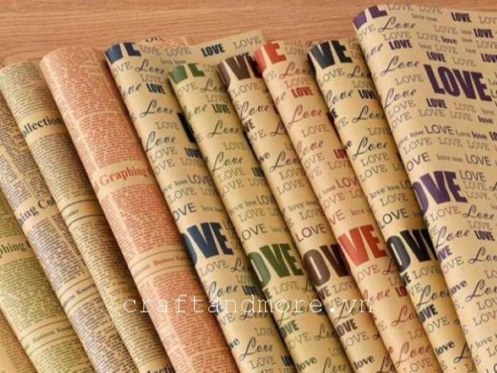 Giấy gói quà, giấy bó hoa vintage. Hiện nay giấy gói quà hay giấy bó hoa được khách hàng lựa chọn nhiều theo hơi hướng vintage cổ điển như những mẫu giấy kraft nâu trơn, giấy báo họa tiết vintage bởi sự độc đáo và khác biệt so với những mẫu giấy thông thường.