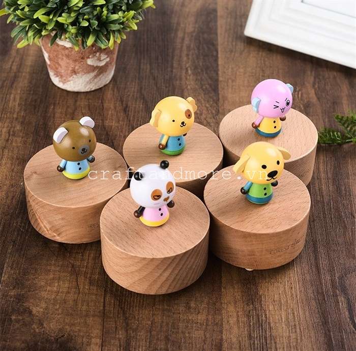 Hộp nhạc hình thú xoay tròn phát nhạc với những giai điệu du dương giúp thư thái tâm hồn mỗi khi căng thẳng. Đây là mẫu hộp nhạc thú vị có thể làm đồ chơi cho các bé ở nhà bởi các hình thú ngộ nghĩnh dễ thương, thiết kế của hộp phát nhạc bạn chỉ cần xoay mô hình thú bên trên đế gỗ khi chạy sẽ vừa phát ra tiếng nhạc và hình thú đồng thời sẽ xoay theo cùng bản nhạc.