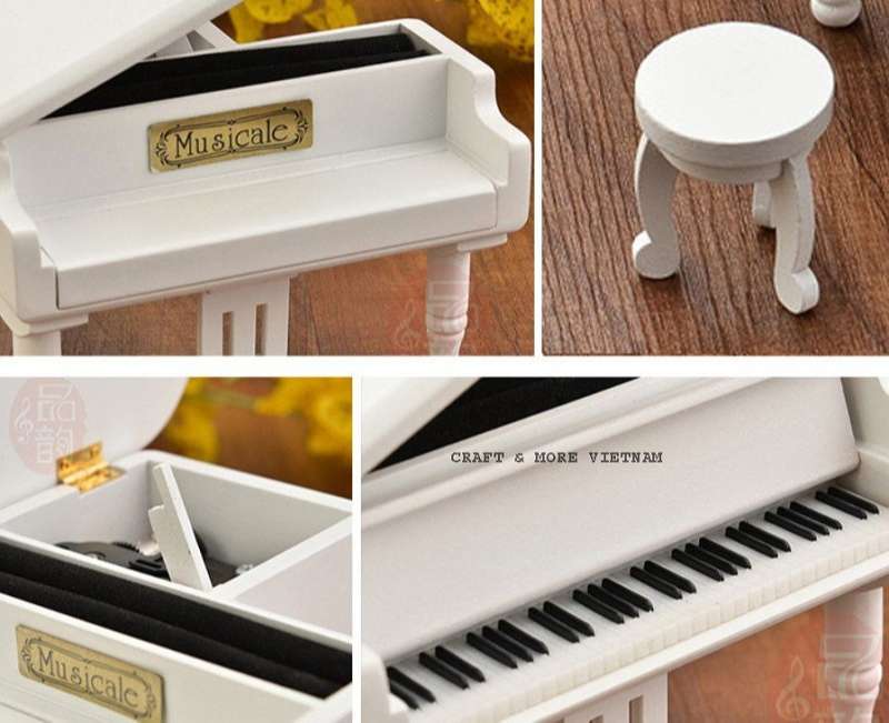 - Hộp nhạc gỗ dây cót Piano khắc tên