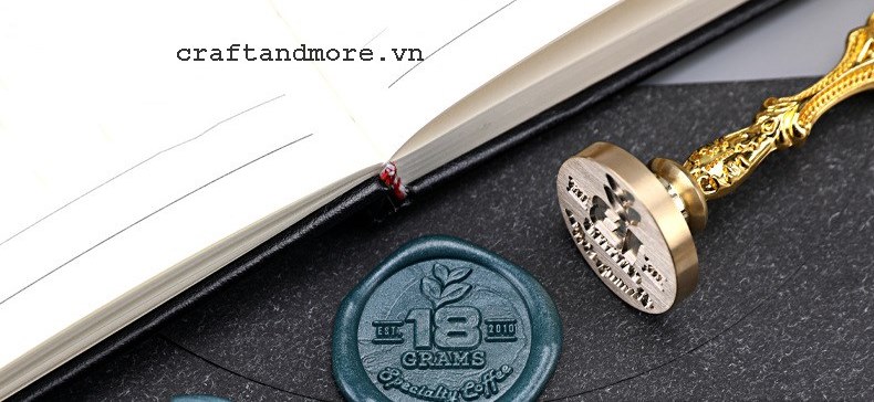 Đặt làm con dấu sáp niêm phong theo yêu cầu đẹp đúng ý dễ nhưng khó! Bạn có rất nhiều lựa chọn nhưng nơi làm dấu sáp chuyên nghiệp và có sẵn các nguyên vật liệu, phụ kiện liên quan không phải ở đâu cũng có. Craft & More Vietnam đã thiết kế và khắc con dấu sáp niêm phong theo yêu cầu cho hàng ngàn khách hàng. Do đặc thù sản phẩm dấu đóng sáp mang hơi hướng nghệ thuật, handmade, sang trọng nên các đơn đặt làm dấu sáp thường có các yêu cầu cao, "khó tính", bao gồm nhiều phụ kiện đồng bộ đi kèm nhằm tôn nét cá tính, sự sang trọng cho thương hiệu của khách hàng ở mức cao nhất. Các sản phẩm đi kèm thường gồm đầu con dấu đóng sáp, chuôi cầm, sáp niêm phong, hộp đựng, dụng cụ nung sáp, nhũ tô trang trí. Tất cả phụ kiện cấu thành con dấu sáp hoàn chỉnh tại Craft & More Vietnam bạn đều có thể chọn lựa mẫu mã để có sản phẩm đúng ý nhất.