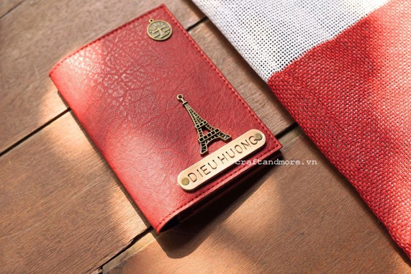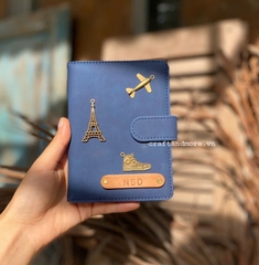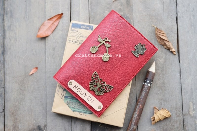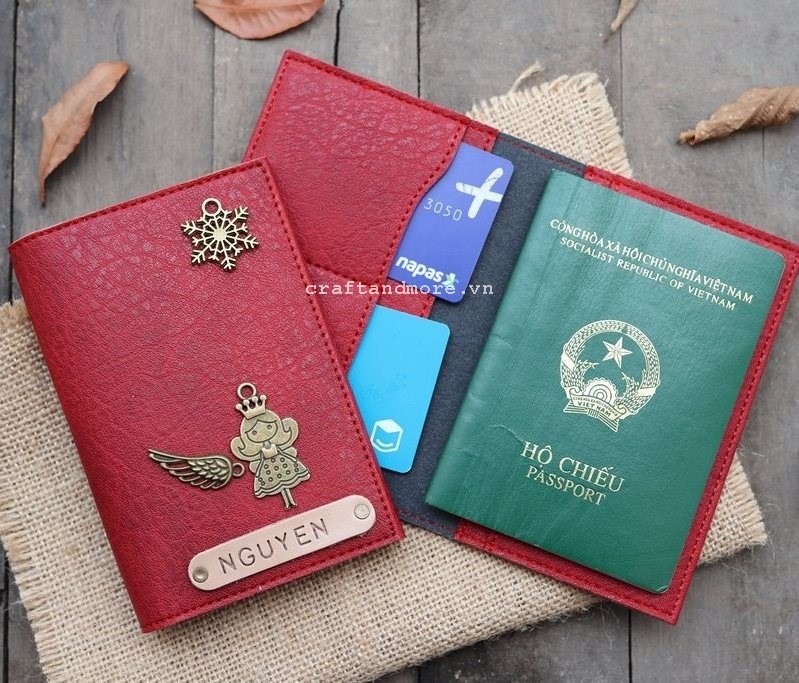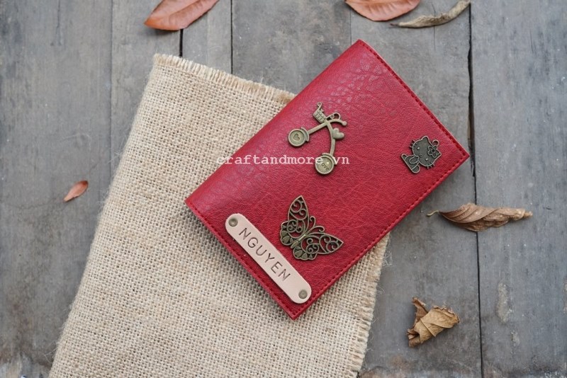 Bao đựng hộ chiếu handmade khắc tên, gắn charm theo ý