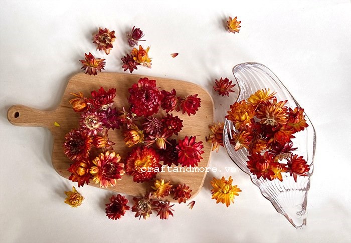 Những set hoa, bó hoa tại Craft & More Vietnam là hoa, lá không tàn và hoa làm handmade - thủ công được gói ghém, sắp xếp cẩn thận theo từng concept màu, phong cách.