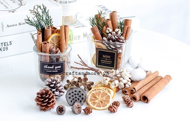 Nến thơm trang trí với hoa lá khô không tàn; dụng cụ khuyếch tán tinh dầu thơm