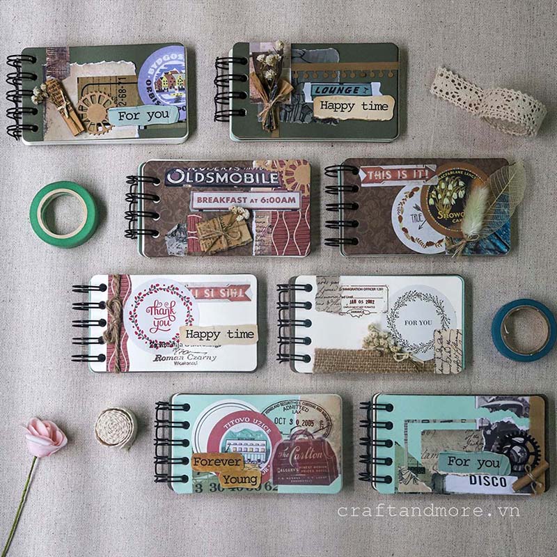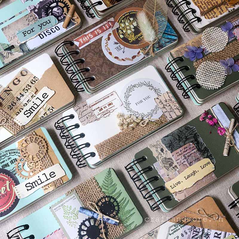 Craft & More Vietnam với hơn 10 năm mê làm scrapbook, chúng mình hiểu những mong muốn thực tế và hợp lý nhất từ khách hàng, đặc biệt là những người bận rộn, chưa có nhiều kinh nghiệm làm handmade. Chúng mình design sẵn nhiều mẫu scrapbook tuyệt đẹp, đậm chất vintage rất được yêu thích. Việc còn lại của bạn là in ảnh, dán và viết ghi chú kể lại câu chuyện bạn muốn.