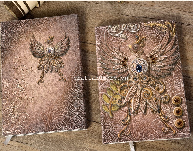 Bìa in dập nổi 3D; Cảm giác thoải mái bìa cứng giả da PU; họa tiết phù điêu 3D retro châu âu.
