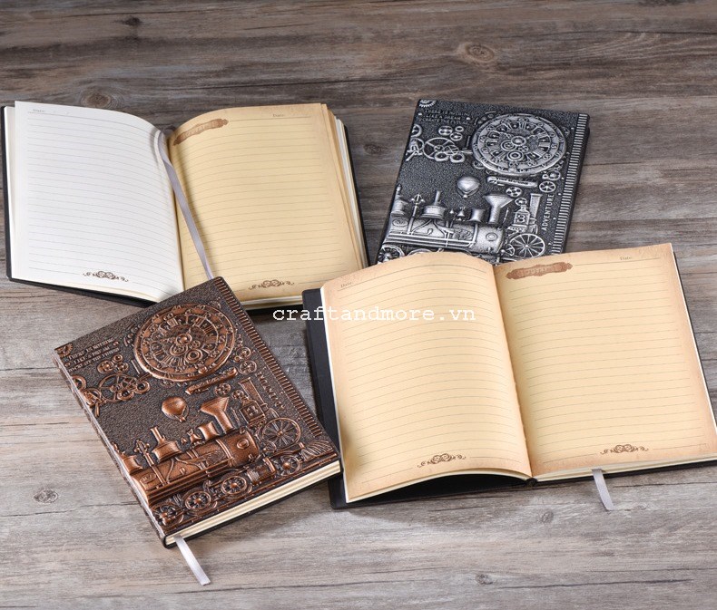 Bìa sổ da được dập nổi tạo hiệu ứng đặc biệt. Ruột sổ được in ấn tuy đơn giản nhưng đẹp và cá tính, đậm chất vintage.