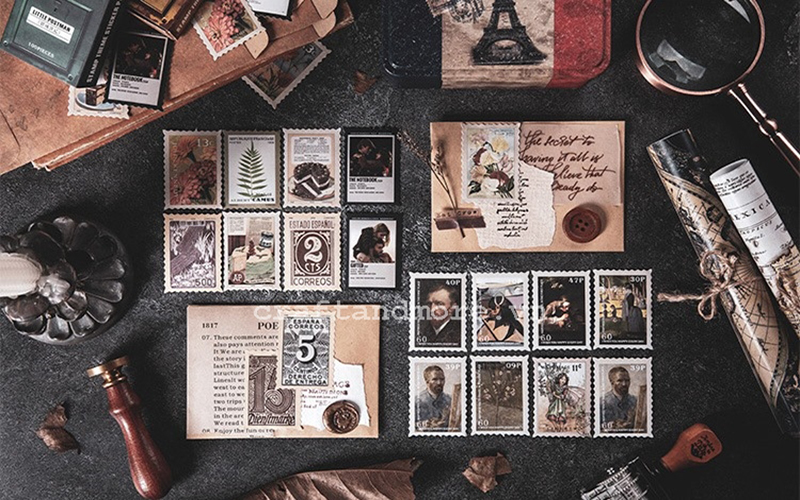 Sticker trang trí tem post với nhiều chủ đều hoa lá, danh nhân.., mỗi mẫu sẽ có 2 tem, 1 hộp có 100 lá tem để bạn thỏa sức trang trí scrapbook, laptop, sổ tay, ốp điện thoại... hay bất cứ sản phẩm sáng tại nào!