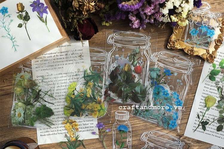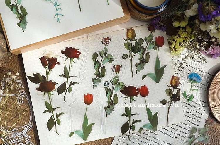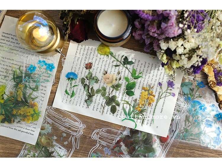 Sticker nhãn dán hoa lá Vintage nền trong suốt chuyên dùng trang trí bullet journal, planner, ly cốc, hộp đựng...
