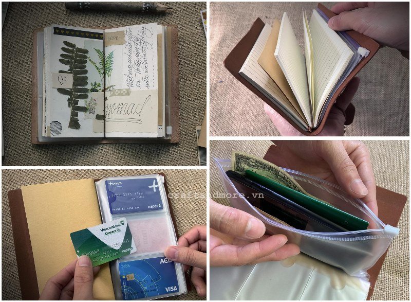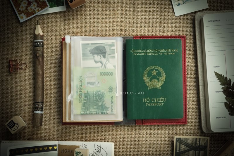 ** Kích thước mini A6 nhỏ xinh tiện dụng: 10 x 15cm; 160 trang giấy; đựng 20 thẻ; 1 túi zip chống nước để tiền, trang sức, passport, giấy tờ. Có quai cài chắc chắn.
