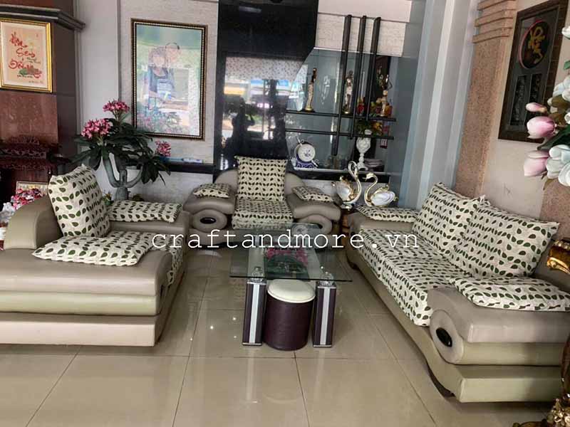 Các họa tiết lá trên áo gối hoặc bọc ghế sofa sẽ là điểm nhấn trang trí căn phòng thêm cá tính.