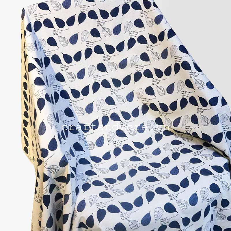 Vải họa tiết phong cách vintage với nền vải trắng ngà, sợi vải mịn, đẹp in họa tiết lá sẽ hợp gu thẩm mỹ với người mê phong cách retro, hoài cổ. Các họa tiết lá xanh in khá nhỏ nên vải dễ dàng may các vật dụng có kích thước đa dạng.