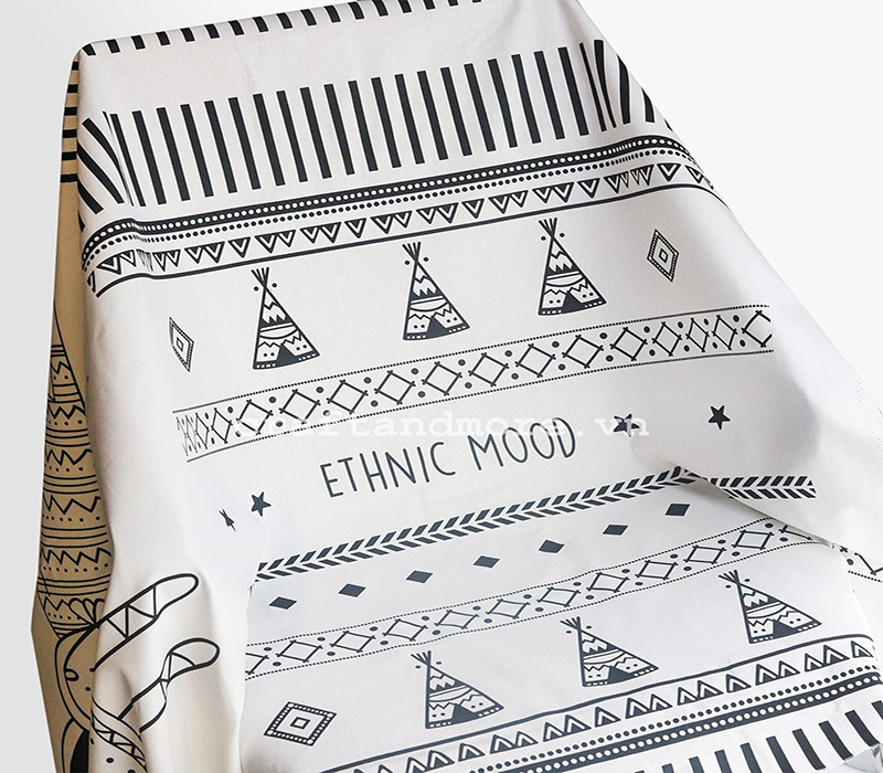 Vải bố canvas họa tiết thổ cẩm trắng tin in họa tiết đen nổi bật sẽ hợp gu thẩm mỹ với người mê phong cách retro cá tính. Khổ vải 1m50 thích hợp may nhiều sản phẩm đa dạng kích thước.