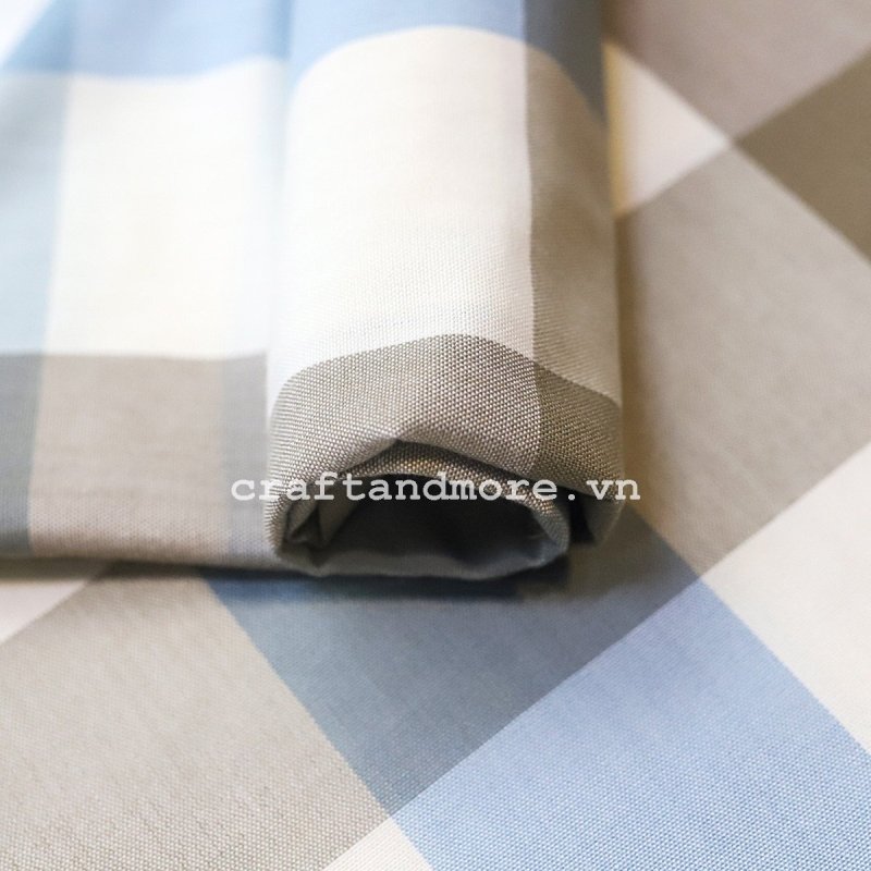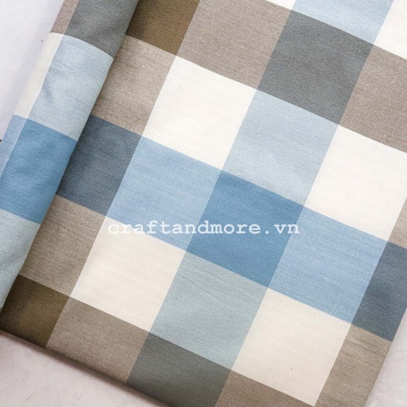 Vải sọc ca rô, "mình" vải dày, màu sắc phớt nhẹ Blue Pastel rất dễ may phối cho nội thất nhà cửa. Chống thấm tốt, họa tiết kẻ ca rô không bao giờ lỗi mốt!