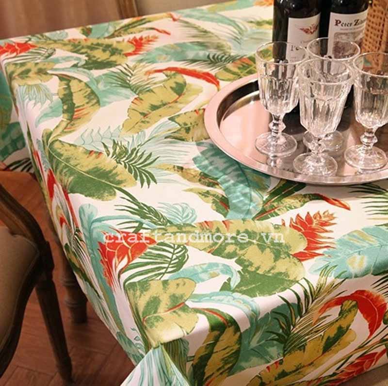 Vải giữ màu cực tốt, giặt ủi thoải mái nên vải cũng phù hợp may khăn trải bàn và các vật dụng khác như tấm phủ, khăn ăn. Vải dễ may phối viền ren hoặc dùng với table runner trang trí.
