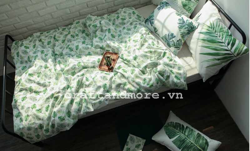 Các họa tiết lá nhỏ trên áo gối hoặc bọc mền sẽ là điểm nhấn trang trí căn phòng thêm cá tính.