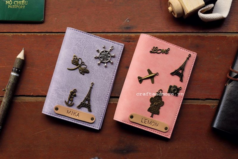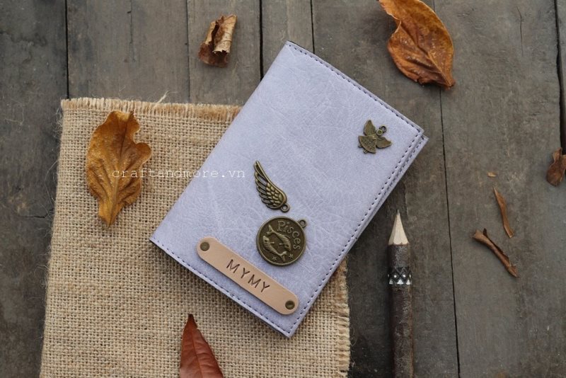 Bao đựng hộ chiếu handmade khắc tên, gắn charm theo ý